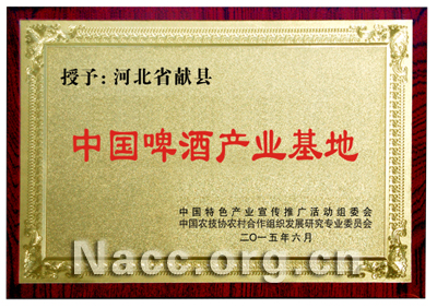 河北省獻(xiàn)縣啤酒產(chǎn)業(yè)基地銅牌...