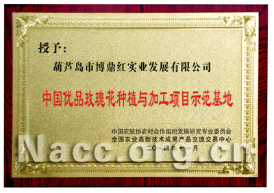 葫蘆島市博鼎紅實(shí)業(yè)發(fā)展有限公司 中國(guó)優(yōu)品玫瑰花種植與加工項(xiàng)目示范基地銅牌 2015-08-19 點(diǎn)擊:161177 評(píng)論:0